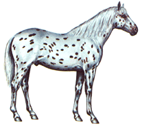 In the US, Quarter Horse blood has been bred into the Appaloosa, resulting in the exaggerated development in the quarters of that breed. In the case of the European Appaloosa, it more closely resembles a warmblood, and is suited for jumping and dressage. The European type is gaining more popularity in the US. The Appaloosa can be athletic and agile, and can be used as a parade horse, for jumping and for racing. Appaloosas are willing performers. These skillful horses are becoming more and more popular today in jumping and racing events. The original Nez Perce horses were bred to be pratical, hardy and versatile mounts for hunting and war. The Indians concerned themselves with breeding hroses which were sensible and with a tractable temperament, and the horses had to possess endless stamina and endurance.
