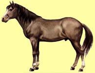 From the word "mesteņa" we get the word Mustang, an Americanized slang for the original Spanish word. "Mesteņa" is said to mean any of these: 1) a group or herd of horses, 2) stray, and 3) stranger. This wild western American horse is not native to the New World, but a transplant - a stranger.